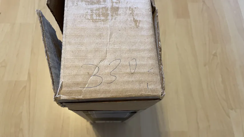 - Preis-Aufschrift '330,-' auf Karton