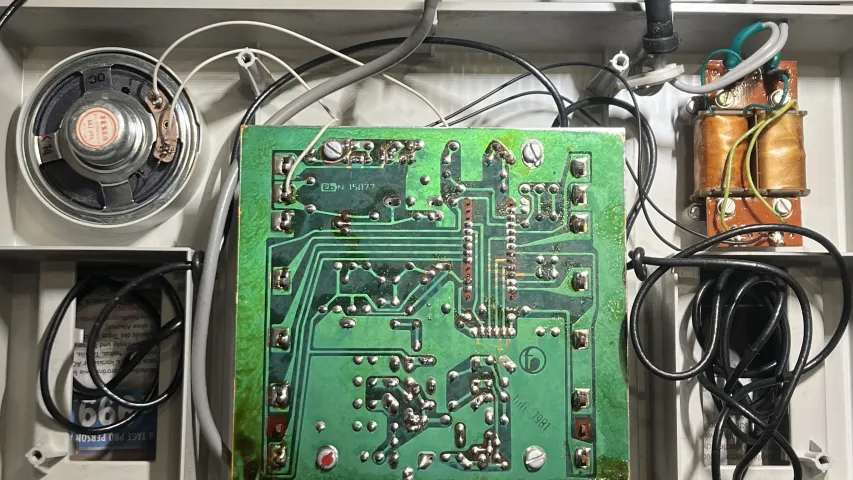Original erhalten, voll Funktionsfähig, professionell instandgesetzt durch Austausch der Elektrolyt Kondensatoren mit anschließender Abstimmung des Taktgenerators und der HF Schaltung nach RFT Serviceanleitung, 2 Nasen von Controller Halterung links nicht mehr vorhanden.