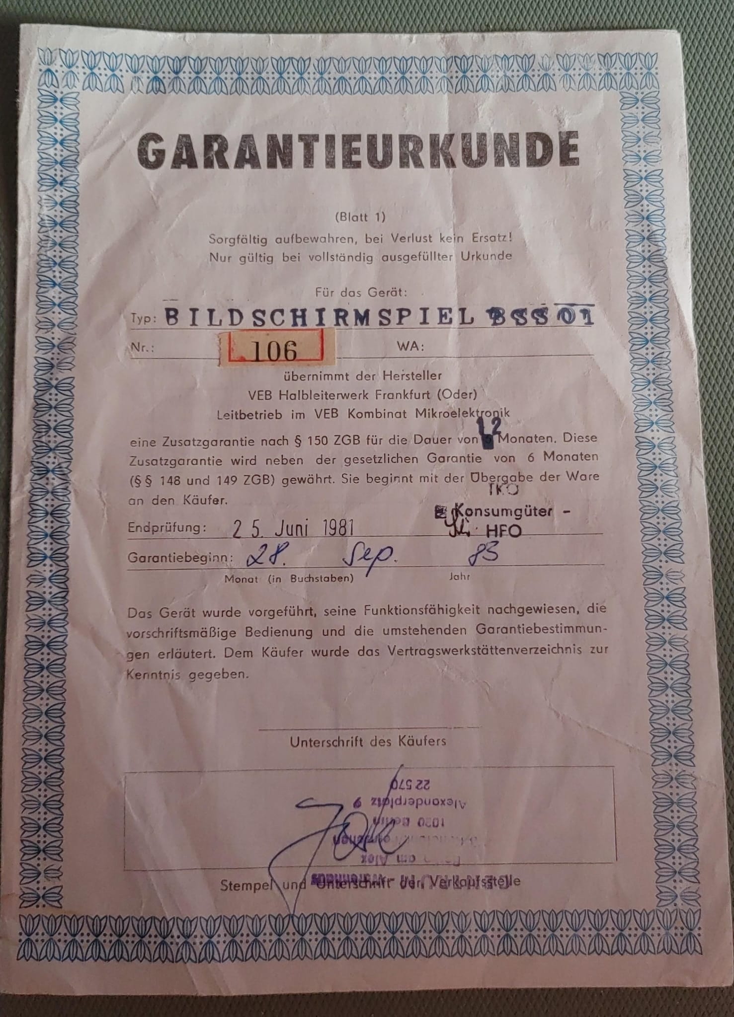 BSS01 bearbeiten: RFT BSS01 106