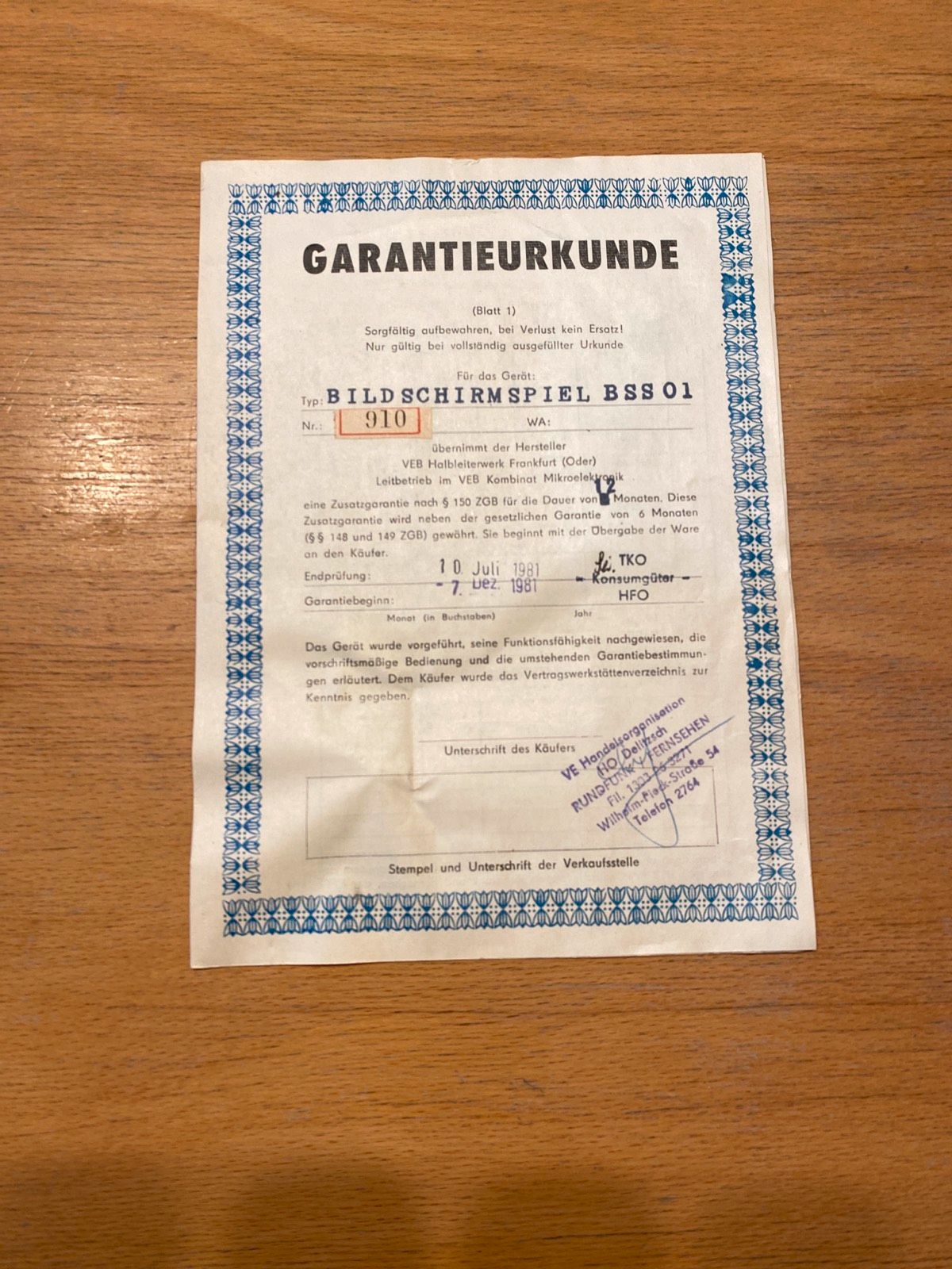BSS01 bearbeiten: RFT BSS01 910